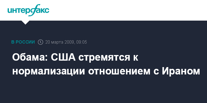Москва. 20 марта. INTERFAX.RU - Президент США Барак Обама заявил в обращении к иранскому народу, что хотел бы нормализовать отношения с Тегераном.