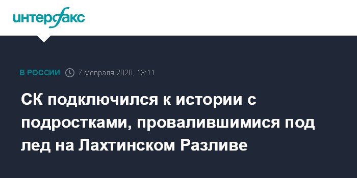 СК подключился к истории с подростками, провалившимися под лед на Лахтинском Разливе