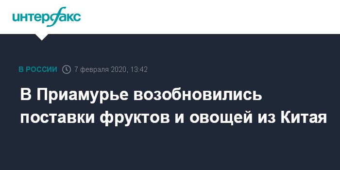 Ранее в феврале стало известно о том, что поставки овощей из Китая были возобновлены в Приморье. Власти региона пошли на такой шаг, чтобы избежать дефицита овощей. Чиновники учли мнение экспертов, о том что запрещать ввоз фруктов и овощей не имеет смысла, поскольку новый коронавирус не стойкий в окружающей среде.