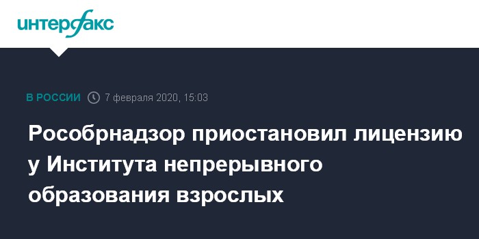 Рособрнадзор приостановил лицензию у Института непрерывного образования взрослых