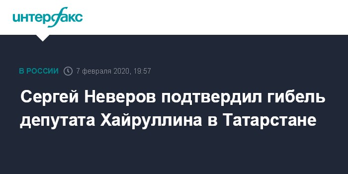 Сергей Неверов подтвердил гибель депутата Хайруллина в Татарстане