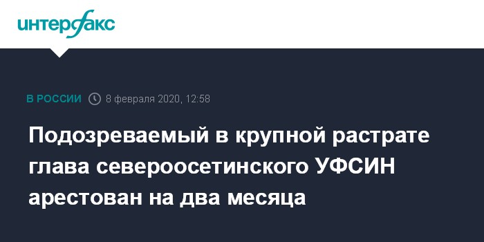 Подозреваемый в крупной растрате глава североосетинского УФСИН арестован на два месяца