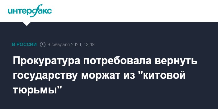 Москва. 9 февраля. INTERFAX.RU - Амурская бассейновая природоохранная прокуратура направила иск в Ялтинский городской суд о возврате из незаконного владения ООО "Акватория" и передачи в собственность РФ шести моржат, ранее живших в "китовой тюрьме".