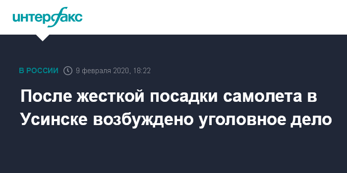 После жесткой посадки самолета в Усинске возбуждено уголовное дело