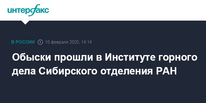 Москва. 10 февраля. INTERFAX.RU - Правоохранительные органы провели обыск и выемку документов в Институте горного дела Сибирского отделения РАН. Об этом сообщил агентству "Интерфакс" информированный источник.