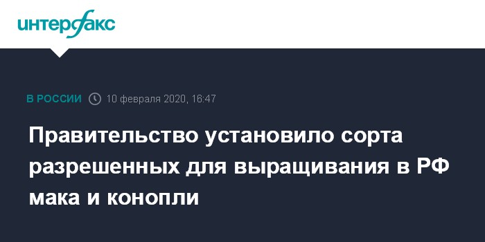 Москва. 10 февраля. INTERFAX.RU - Правительство РФ установило сорта наркосодержащих растений - мака и конопли, которые можно выращивать в РФ.