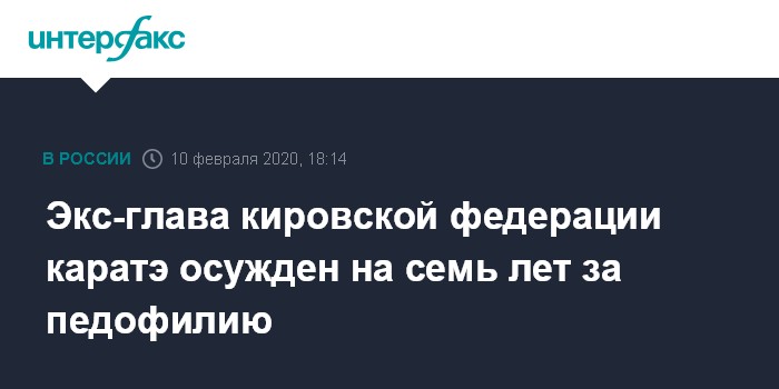 Москва. 10 февраля. INTERFAX.RU - Суд в Кировской области вынес обвинительный приговор бывшему главе областной федерации каратэ по делу о насилии над ребенком.