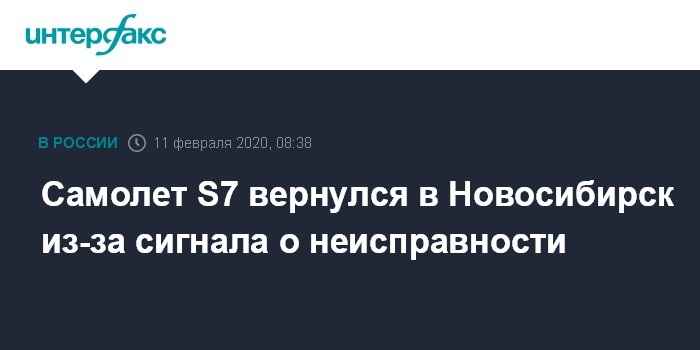 Москва. 11 февраля. INTERFAX.RU - Самолет авиакомпании S7, вылетевший из Новосибирска в Москву, вернулся в аэропорт "Толмачева" после того, как в нем сработал датчик технической неисправности, рассказал информированный источник "Интерфакса". во вторник, вернулся в аэропорт вылета, сообщил "Интерфаксу" информированный источник.