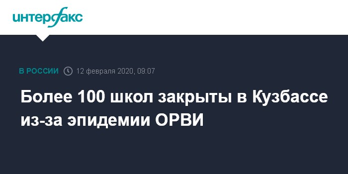 Москва. 12 февраля. INTERFAX.RU - Превышение эпидемиологического порога по ОРВИ и гриппу на 17% в Кузбассе стало причиной закрытия на карантин более 100 школ и детских садов в нескольких населенных пунктов региона, сообщили "Интерфаксу" в пресс-службе управления Роспотребнадзора по Кемеровской области в среду.
