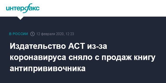 Издательство АСТ из-за коронавируса сняло с продаж книгу антипрививочника