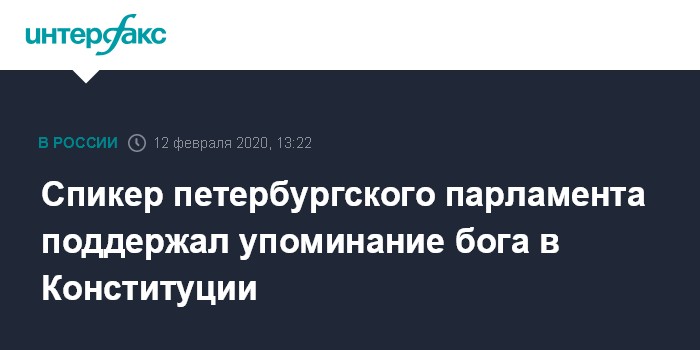Москва. 12 февраля. INTERFAX.RU - Спикер Законодательного собрания Петербурга Вячеслав Макаров поддержал включение упоминания о Боге в Конституцию РФ.