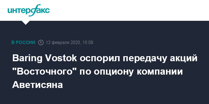 Baring Vostok оспорил передачу акций "Восточного" по опциону компании Аветисяна