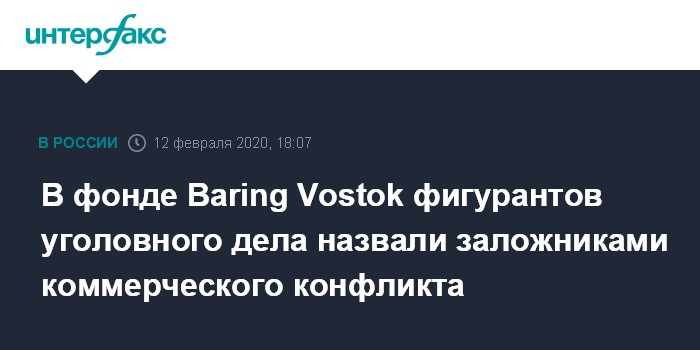 Москва. 12 февраля. INTERFAX.RU - В инвестфонде Baring Vostok назвали "единственно верным" решение Мосгорсуда перевести под домашний арест партнера фонда Вагана Абгаряна, директора компании по инвестициям Ивана Зюзина и бывшего гендиректора "Первого коллекторского бюро" (ПКБ) Максима Владимирова, обвиняемых в растрате средств банка "Восточный".