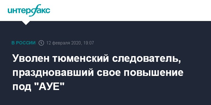 Москва. 12 февраля. INTERFAX.RU - Следователь следственного управления СКР по Тюменской области, который с коллегами отмечал свое повышение под возгласы "АУЕ" и "Жизнь ворам", уволен из органов.
