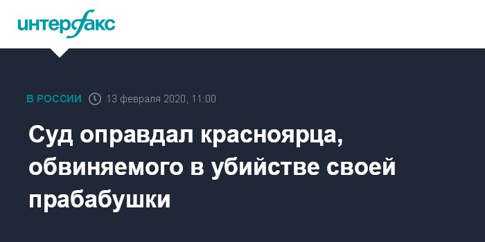Москва. 13 февраля. INTERFAX.RU - Красноярский краевой суд вынес оправдательный приговор 23-летнему Александру Радцеву, обвиняемому в убийстве своей 92-летней прабабушки, находящийся в беспомощном состоянии, сообщает в четверг пресс-служба суда.