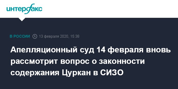 Апелляционный суд 14 февраля вновь рассмотрит вопрос о законности содержания Цуркан в СИЗО