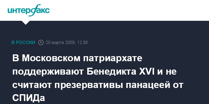 В Московском патриархате поддерживают Бенедикта XVI и не считают презервативы панацеей от СПИДа