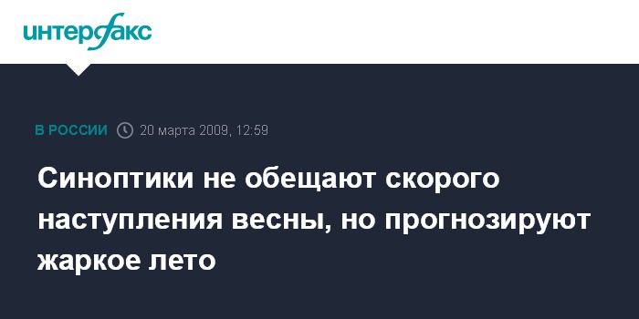 Москва. 20 марта. INTERFAX.RU - Директор Гидрометцентра России Роман Вильфанд заявил, что весенняя погода в нынешнем году установится еще не скоро. "Ожидать бурной весны в марте пока не стоит. Не нужно ожидать, что в ближайшее время это произойдет, март - это все-таки зимний месяц", - сказал Р.Вильфанд на пресс-конференции в пятницу. В центральном регионе в этом нет ничего для этого времени необычного, подчеркнул Вильфанд. По его словам, "надеяться на то, что в России весна будет приходить так же рано как в Европе, пока рановато".