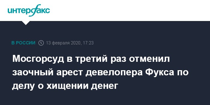 Мосгорсуд в третий раз отменил заочный арест девелопера Фукса по делу о хищении денег