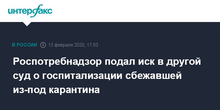 Роспотребнадзор подал иск в другой суд о госпитализации сбежавшей из-под карантина
