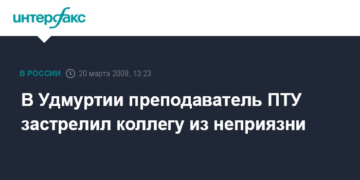 Москва. 20 марта. INTERFAX.RU - В Сюмсинском районе Удмуртии преподаватель местного училища задержан по подозрению в убийстве коллеги прямо на рабочем месте.