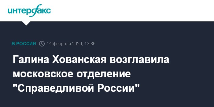 Москва. 14 февраля. INTERFAX.RU - Депутат Госдумы, глава комитета по жилищной политике и жилищно-коммунальному хозяйству Галина Хованская стала главой регионального отделения партии "Справедливая Россия" в Москве вместо Александра Романовича, сообщили "Интерфаксу" в пятницу в пресс-службе партии.