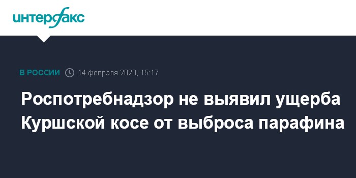 Москва. 14 февраля. INTERFAX.RU - Выброс парафина не нанес ущерба российской части Куршской косы, заявили в Балтийско-арктическом межрегиональном управлении Росприроднадзора. Парафин выбросило на российскую и литовскую часть косы в конце января.