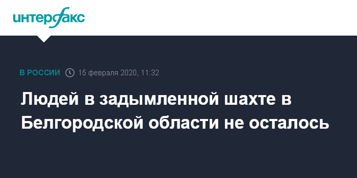 Москва. 15 февраля. INTERFAX.RU - Из шахты в Белгородской области, где произошло задымление, вывели всех людей, сообщили "Интерфаксу" в субботу в МЧС России.