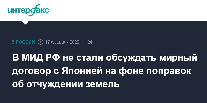 В МИД РФ не стали обсуждать мирный договор с Японией на фоне поправок об отчуждении земель