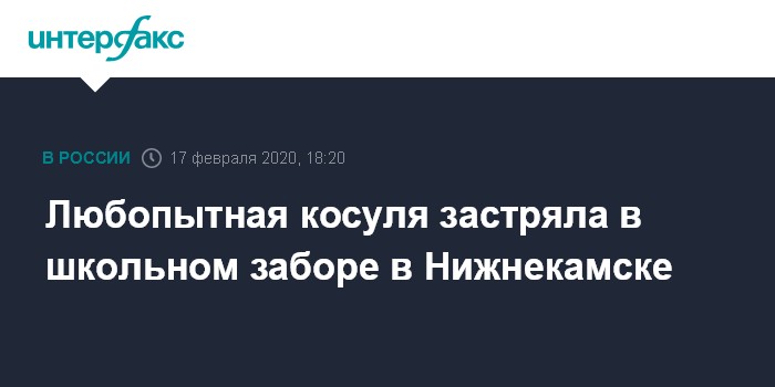Москва. 17 февраля. INTERFAX.RU - В Нижнекамске спасли молодую косулю, которая в понедельник забрела на школьный двор и, покидая его, застряла между прутьев забора, сообщает Госкомитет Татарстана по биоресурсам.