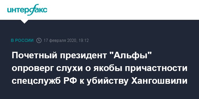 Почетный президент "Альфы" опроверг слухи о якобы причастности спецслужб РФ к убийству Хангошвили