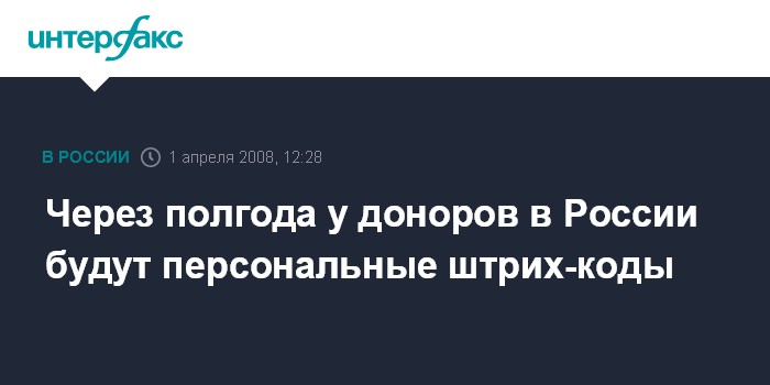 Москва. 1 апреля. INTERFAX.RU - Электронная система идентификации доноров, которая начнет работать в России текущей осенью, позволит обеспечить безопасность при переливании крови, сообщил глава федерального медико-биологического агентства Валентин Уйба.