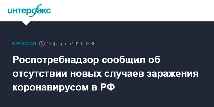 Москва. 18 февраля. INTERFAX.RU - В России не зарегистрировано новых случаев заболевания коронавирусом Covid-19, их по-прежнему два, сообщается на сайте Роспотребнадзора во вторник.