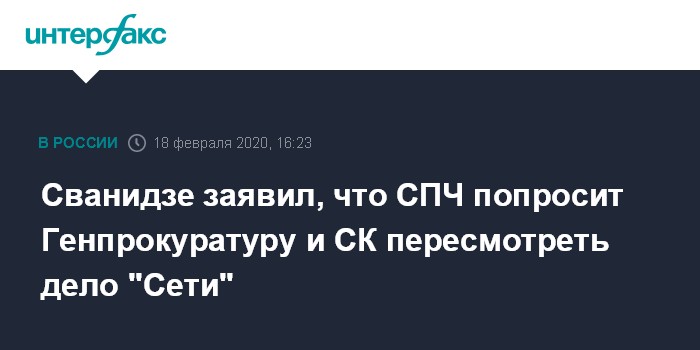 Москва. 18 февраля. INTERFAX.RU - Совет при президенте РФ по правам человека намерен обратиться в Генпрокуратуру и СК с требованием вернуться к рассмотрению дела "Сети", заявил член совета Николай Сванидзе.