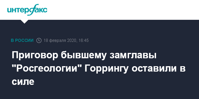 Приговор бывшему замглавы "Росгеологии" Горрингу оставили в силе