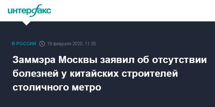 Заммэра Москвы заявил об отсутствии болезней у китайских строителей столичного метро