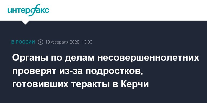 Москва. 19 февраля. INTERFAX.RU - Генпрокуратура РФ проконтролирует проверку работы органов по делам несовершеннолетних в связи с задержанием в Керчи двух подростков, подозреваемых в подготовке терактов в образовательных учреждениях.