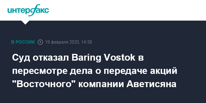Суд отказал Baring Vostok в пересмотре дела о передаче акций "Восточного" компании Аветисяна