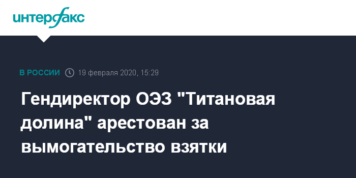 Гендиректор ОЭЗ "Титановая долина" арестован за вымогательство взятки
