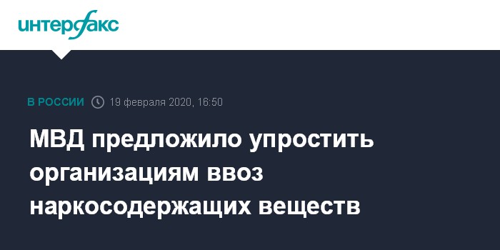 Москва. 19 февраля. INTERFAX.RU - МВД предложило упростить для юридических лиц ввоз наркосодержащих и психотропных веществ за счет сокращения списка необходимых документов. Проект соответствующего постановления правительства опубликован на портале проектов нормативно-правовых актов.