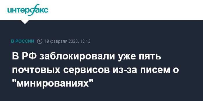 Москва. 19 февраля. INTERFAX.RU - ФСБ РФ с конца января ограничила доступ к пяти зарубежным почтовым сервисам, с которых поступали сообщения об угрозах взрывов в российских городах.