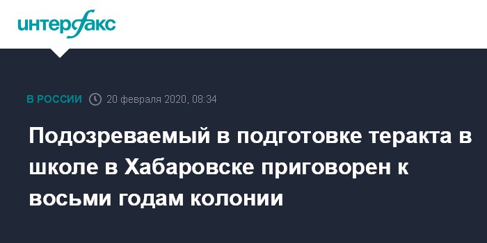 Подозреваемый в подготовке теракта в школе в Хабаровске приговорен к восьми годам колонии