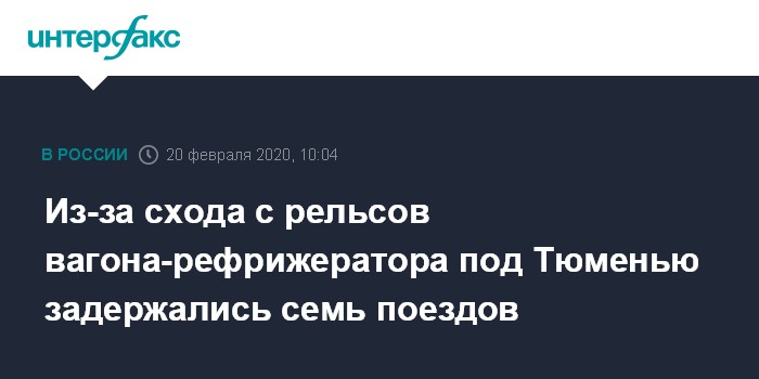 Москва. 20 февраля. INTERFAX.RU - Вагон-рефрижератор сошел с рельсов в ночь на четверг на станции Богандинской под Тюменью, в связи с чем произошла задержка поездов, сообщает пресс-служба Главного управления МЧС по региону.