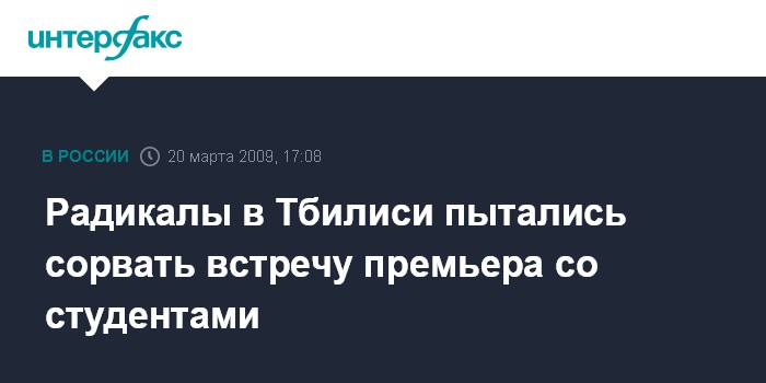 Тбилиси. 20 марта. INTERFAX.RU - Около двух десятков членов радикальной молодежной организации "Институт равноправия" попытались в пятницу помешать встрече премьер-министра Грузии Ники Гилаури со студентами и преподавателями Тбилисского государственного университета.