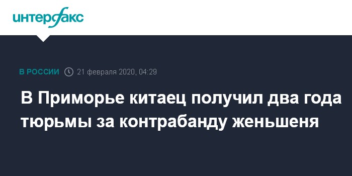 Москва. 21 февраля. INTERFAX.RU - Суд в Приморском крае признал гражданина Китая виновным в контрабанде корней женьшеня и приговорил его к двум годам лишения свободы в исправительной колонии общего режима, сообщила агентству "Интерфакс" представитель прокуратуры Приморья.