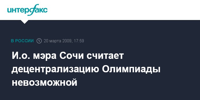 Москва. 20 марта. INTERFAX.RU - Децентрализация проведения зимней Олимпиады-2014 невозможна, заявил исполняющий обязанности мэра Сочи Анатолий Пахомов.