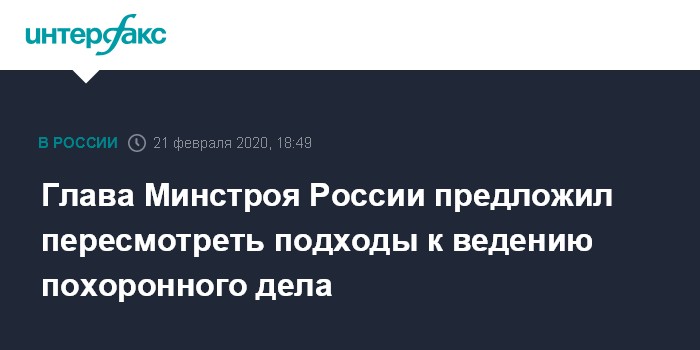 Москва. 21 февраля. INTERFAX.RU - Механизм управления похоронным делом может быть пересмотрен на региональном уровне, заявил глава Минстроя России Владимир Якушев.