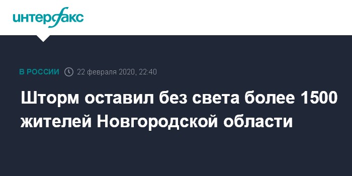 Москва. 22 февраля. INTERFAX.RU - Штормовой ветер оставил без энергоснабжения более 1,5 тыс. жителей Новгородской области, сообщило в субботу региональное ГУ МЧС на сайте.
