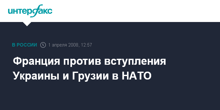 Париж. 1 апреля. INTERFAX.RU - Премьер-министр Франции Франсуа Фийон заявил во вторник, что Франция не поддержит заявки Украины и Грузии на вступление в НАТО.