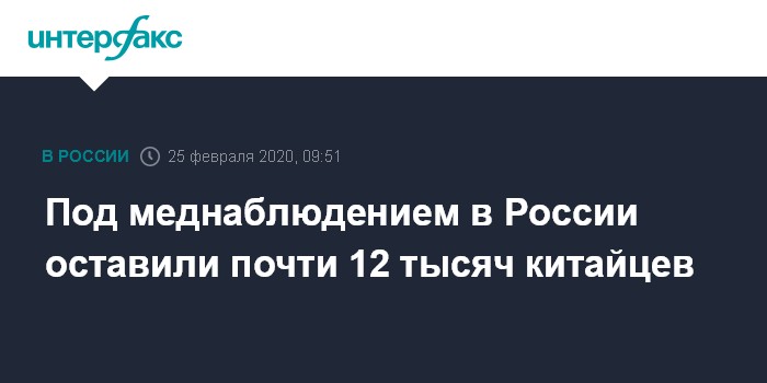 Москва. 25 февраля. INTERFAX.RU - Российские врачи продолжают вести наблюдение за 11,9 тыс. граждан КНР, прибывших в РФ, сообщил во вторник Роспотребнадзор.